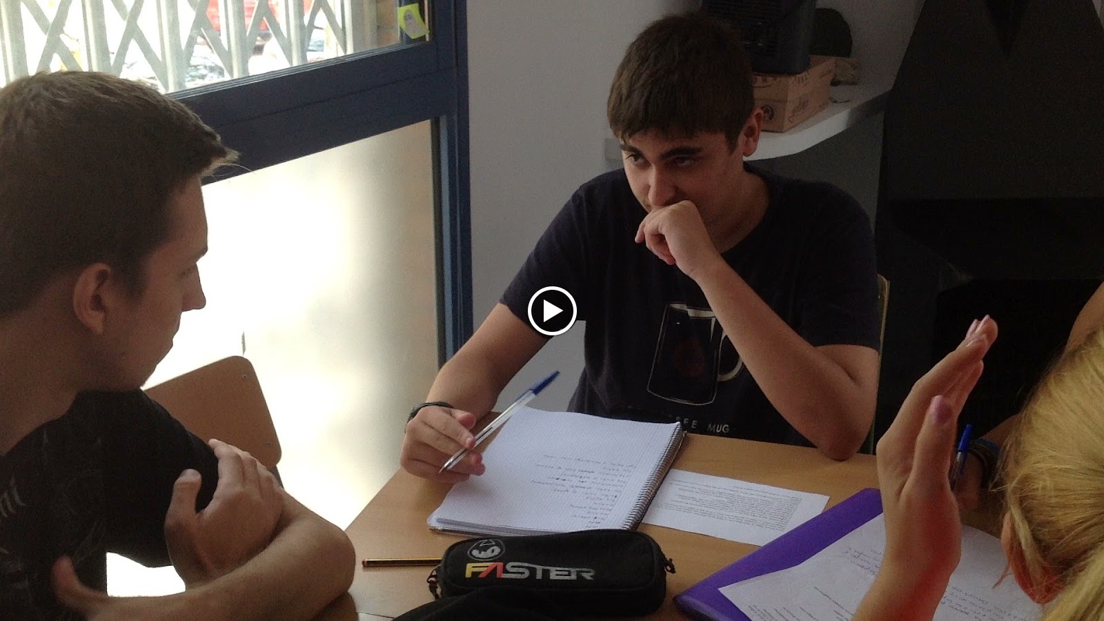Después de contar el mito completo, hemos visto uno de los vídeos del Juicio de Paris hecho por los alumnos de Griego I del curso pasado. Nos detenemos en cada escena para repetir lo que dicen y describir las acciones.